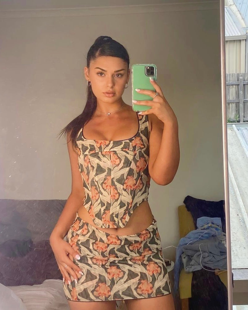 - fully lined corset and skirt