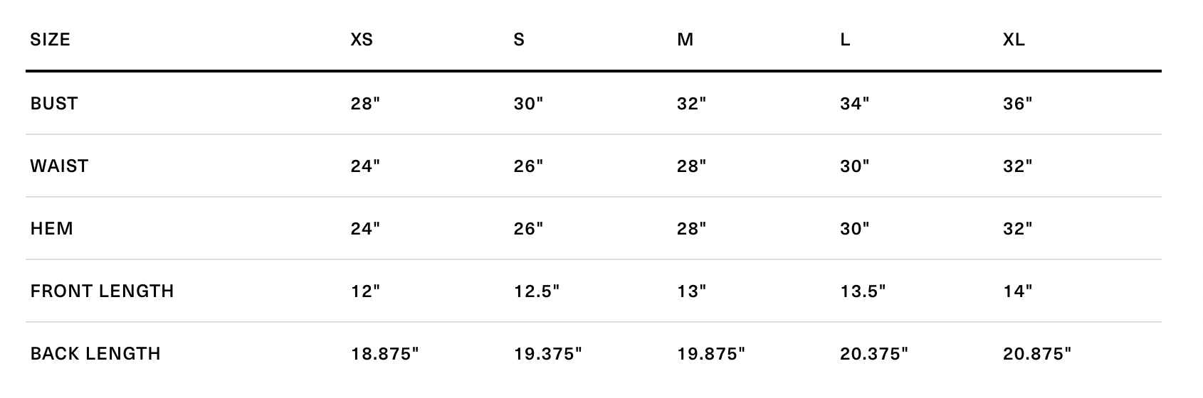 Size xs