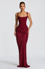 - square neckline with tapered straps