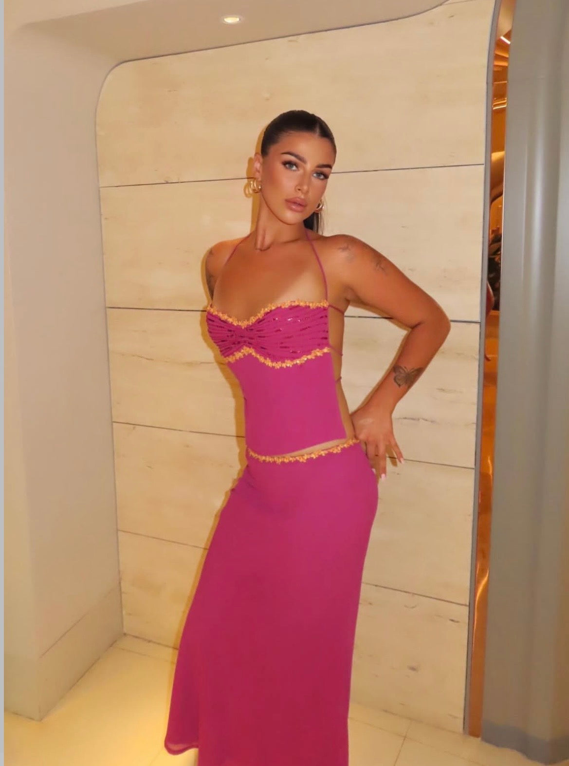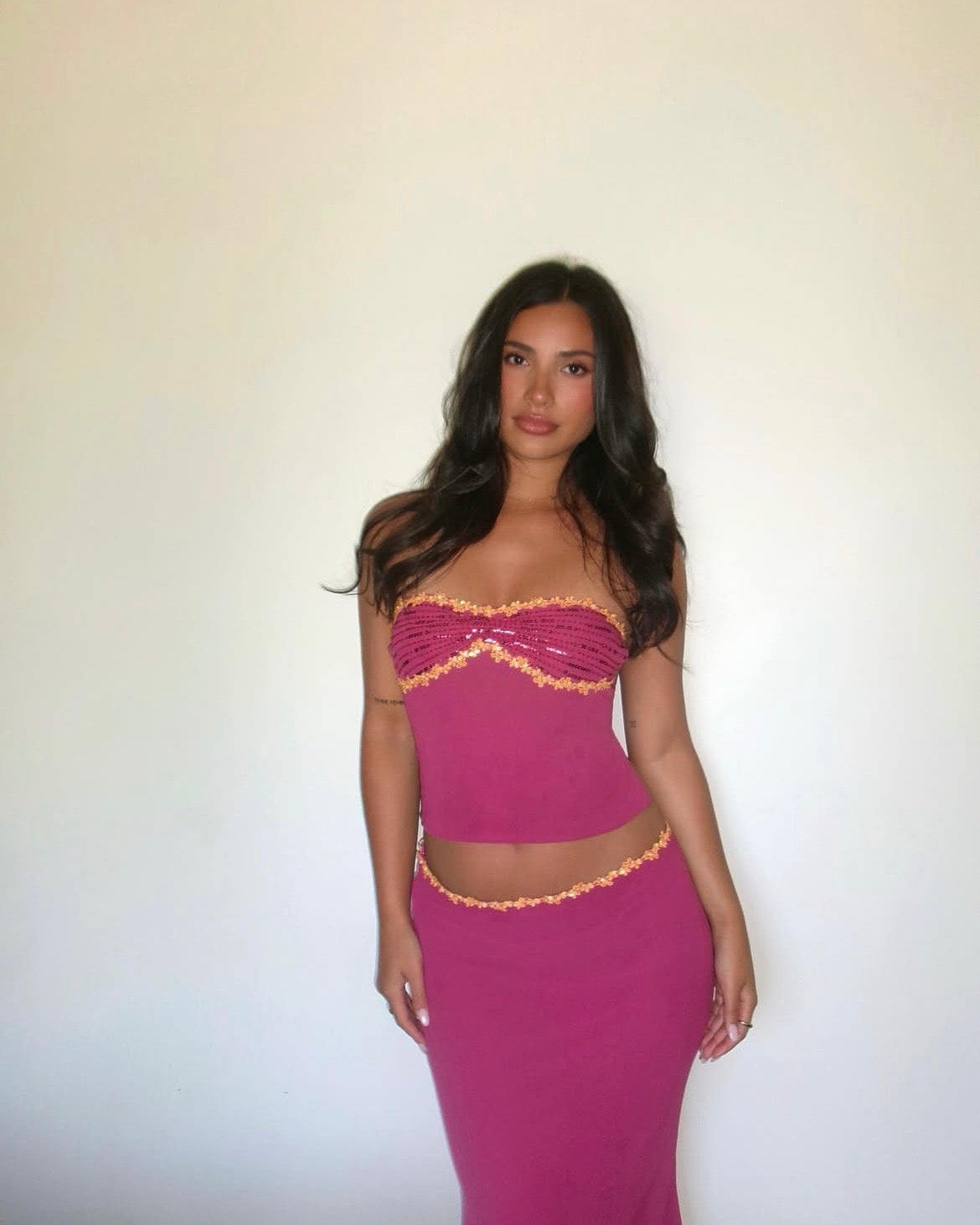 - hand beaded and sequin detail at bust and waist