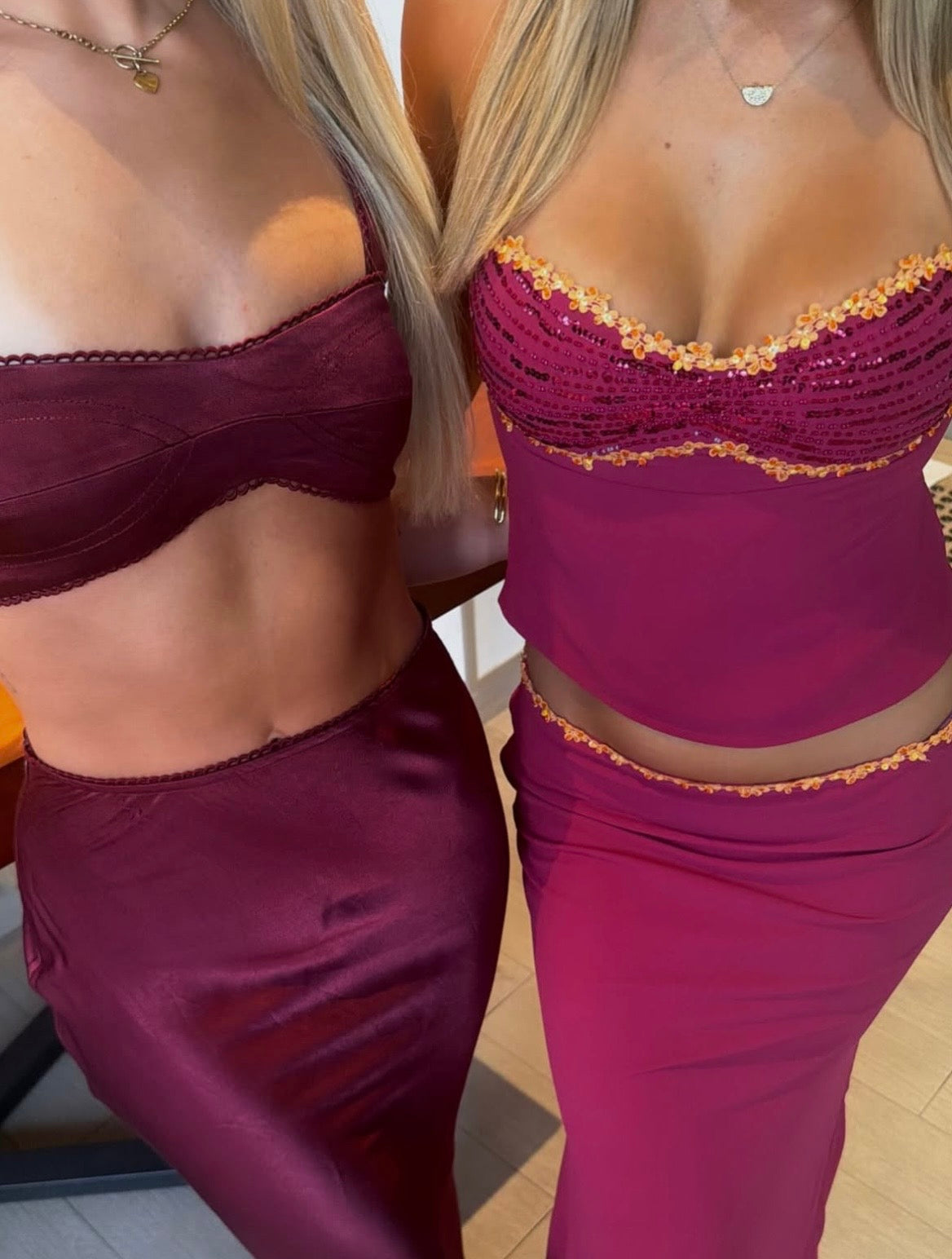 - double lined in chiffon, slightly sheer