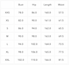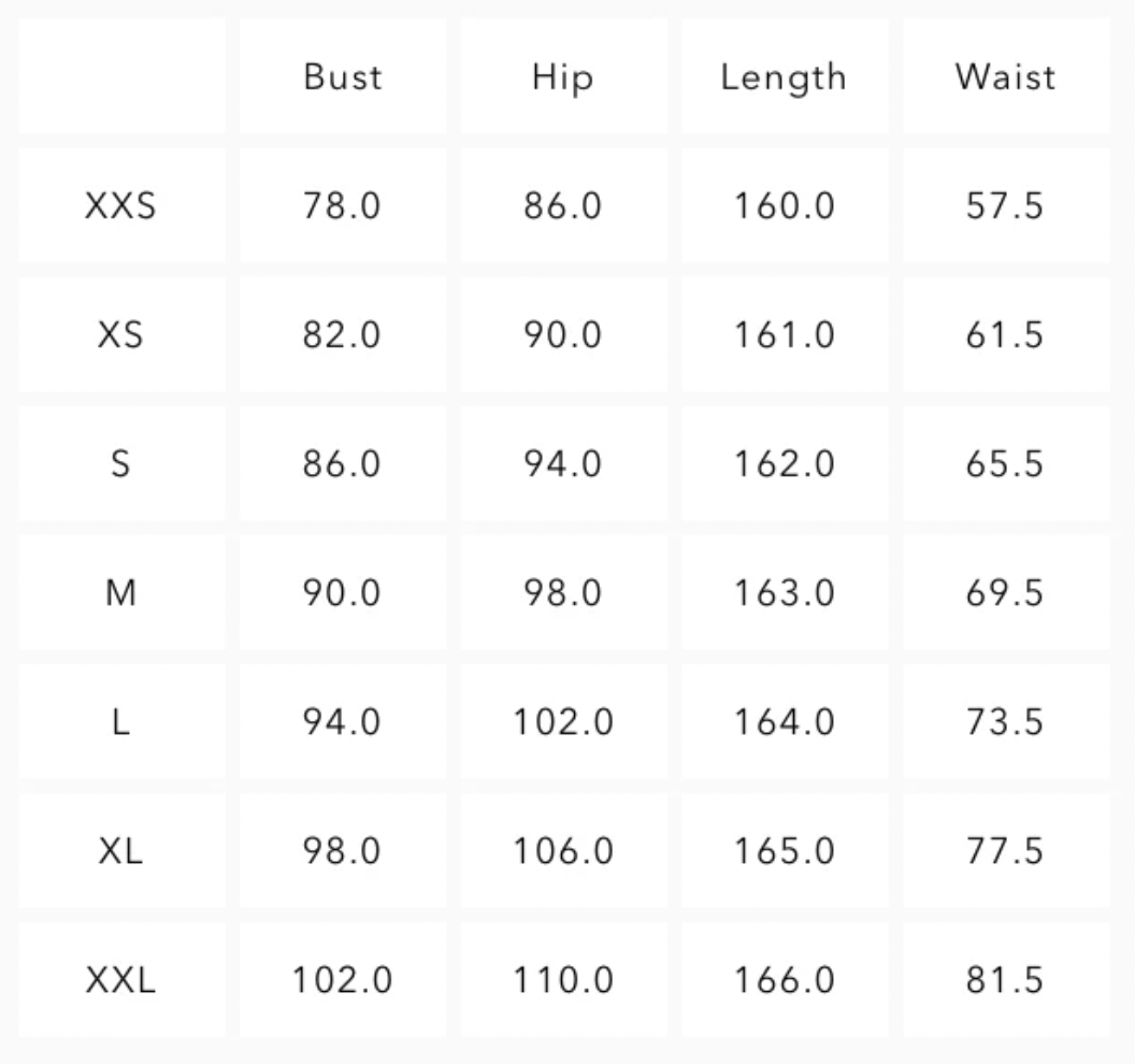 * length: approximately just touching the floor on someone 168cm tall, the length will vary depending on how tight the garment is.